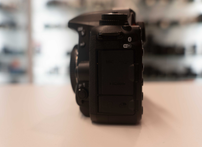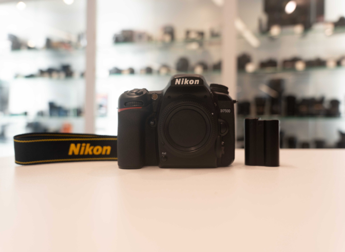 Met daarbij een riem, extra accu en lader. (Lader staat niet op de foto).